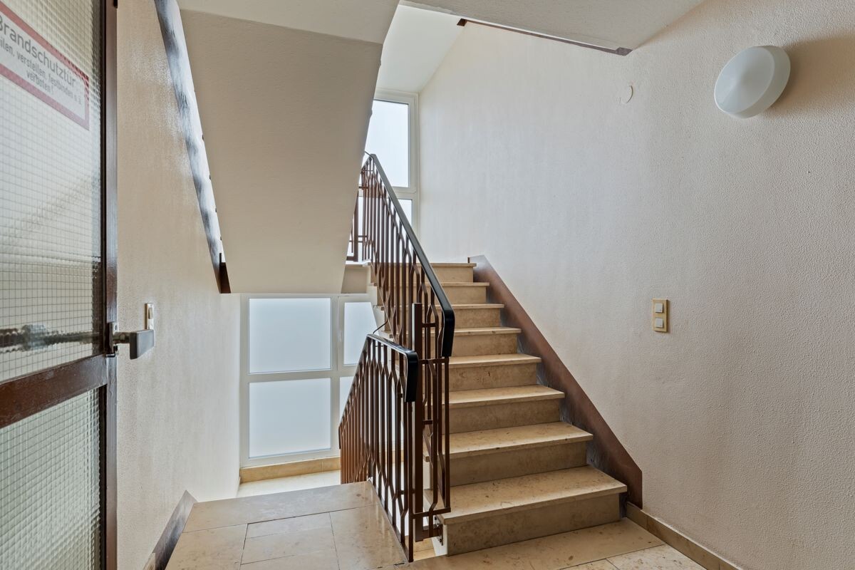 Über den Treppenlift gelangen Sie barrierefrei zum Fahrstuhl, der Sie direkt vor Ihre Wohnung fährt. Im Eingangsbereich der Wohnung finden Sie das Gäste-WC und die Abstellkammer. Über den geräumigen Flur kommen Sie in die beiden Schlafzimmer, in die Küche, das Badezimmer und das Wohnzimmer.Angrenzend am Wohnzimmer befindet sich die sehr geräumige Loggia, die Richtung Süd-Osten ausgerichtet ist. Die Waschmaschine kann wahlweise in der Küche oder im Badezimmer angeschlossen werden. Zu der Wohnung gehören zwei Stellplätze, wovon einer sich in der Tiefgarage und der andere im Außenbereich befindet. Zusätzlich ist ein Kellerabteil inkludiert.
