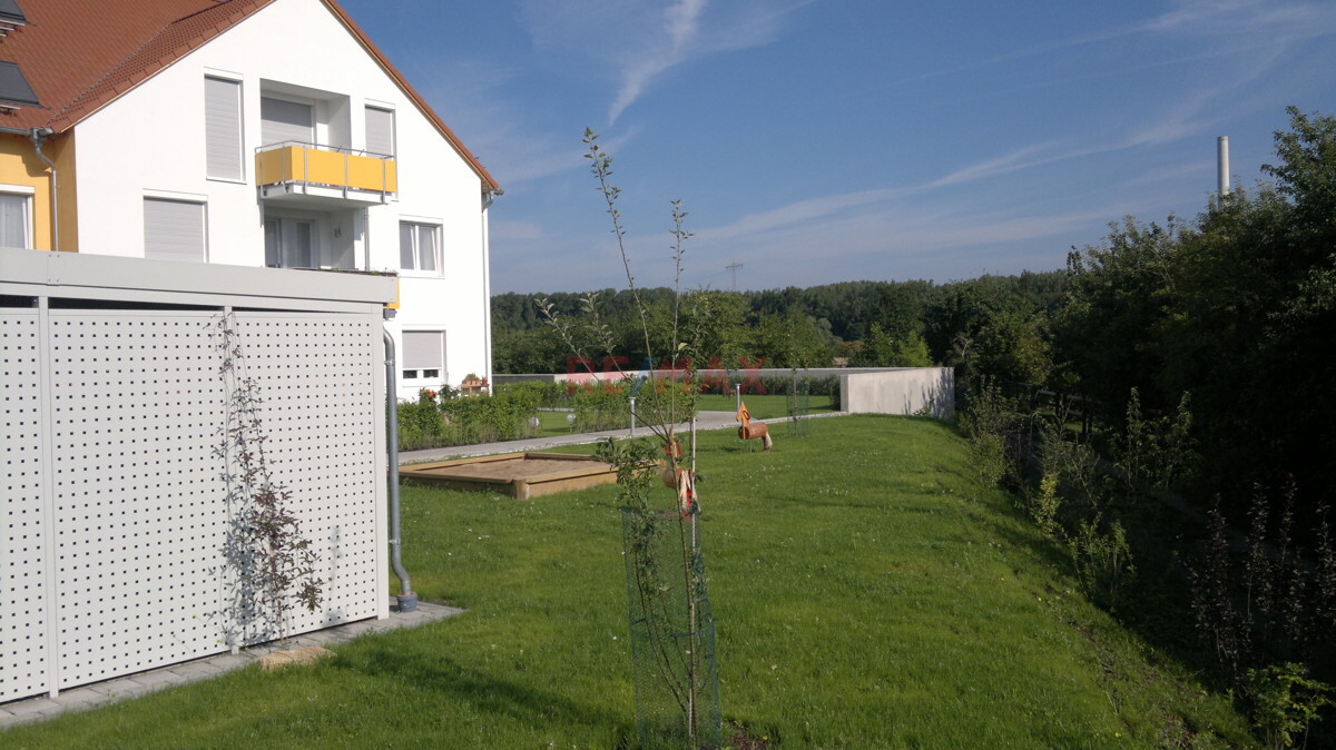 Vor dem Haus erwartet Sie eine gepflegte Grünanlage mit Spielplatz.