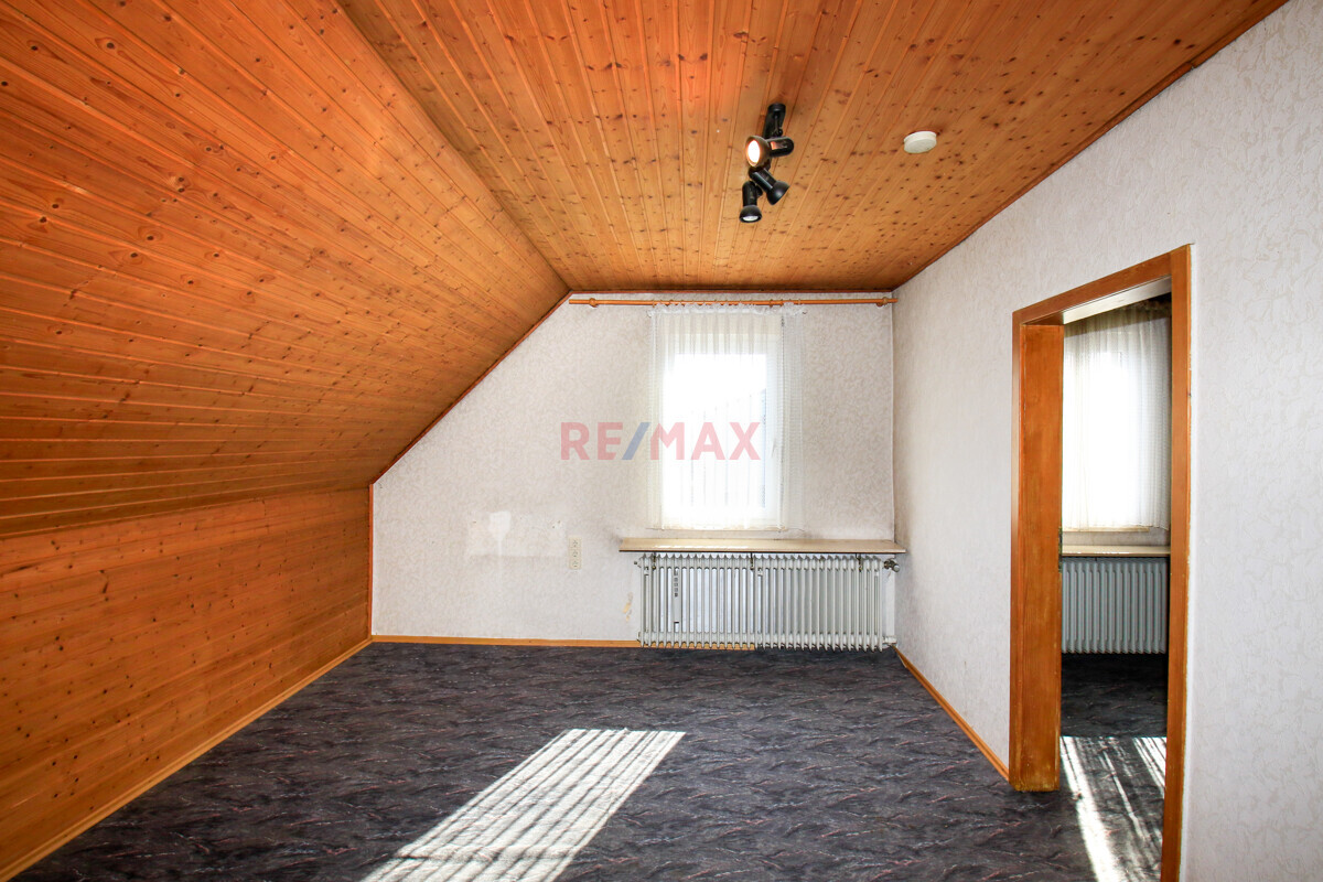 Das Obergeschoss besteht aus 2 Schlafzimmern, einem Wohnzimmer, einem kleinen Tageslichtbad, einer kleinen Küche sowie einem Balkon.