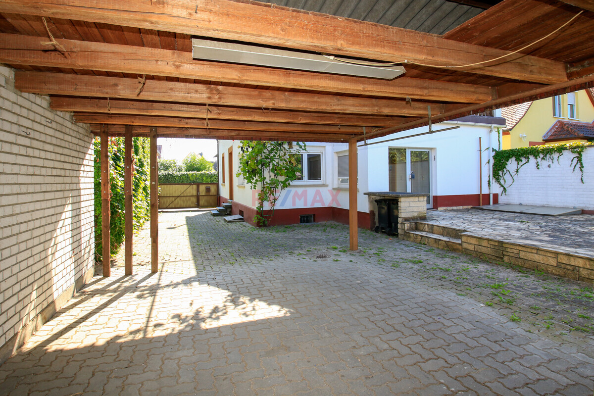 Der Carport bietet zusätzlich Platz für 1-2 Autos. Auch vor den Carport im Hof können Sie noch Fahrzeuge abstellen.