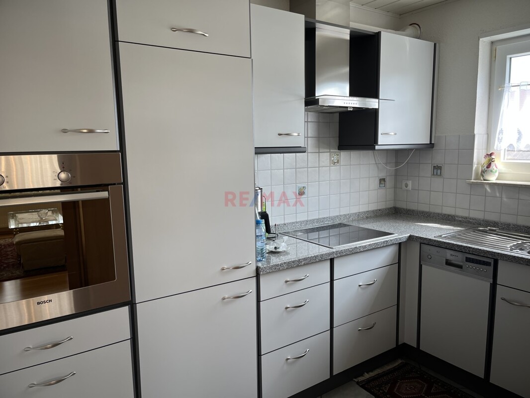 Die hochwertige Einbauküche besticht durch eine Granit-Arbeitsplatte und alle üblichen Einbaugeräte.